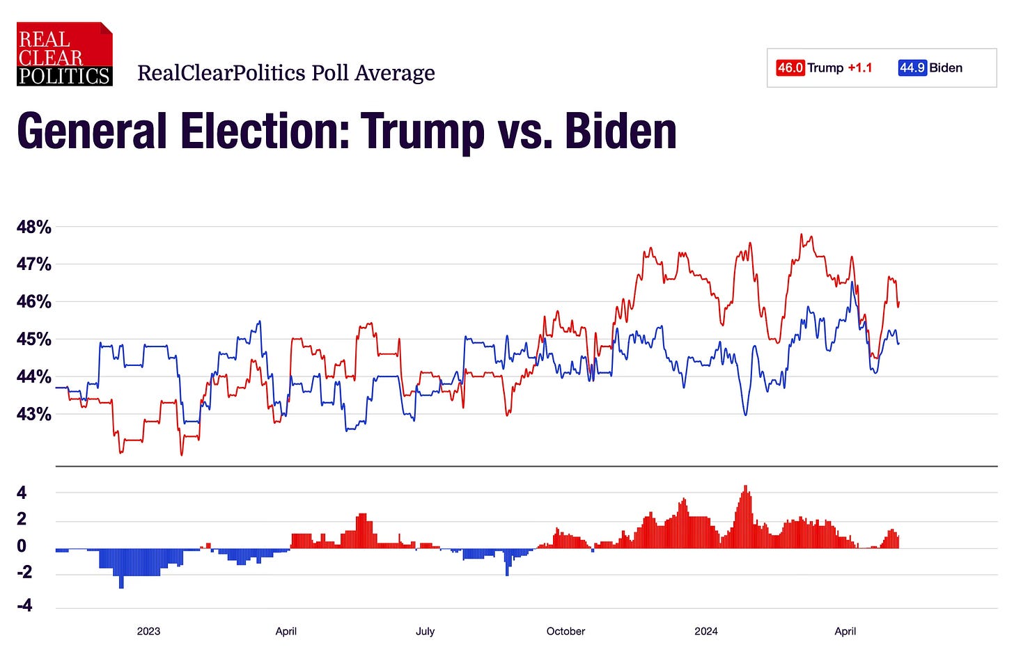Trump has become a more efficient and disciplined campaigner. He is tied up in a courtroom every day, so he has to make every moment before the cameras count. Go back to that clip. He goes after the Columbia protestors, whom a plurality of Americans oppose; then he takes the side of those who have been denied a graduation ceremony; then he ties it all to Joe Biden’s donors— the show is then over and off to court he goes.