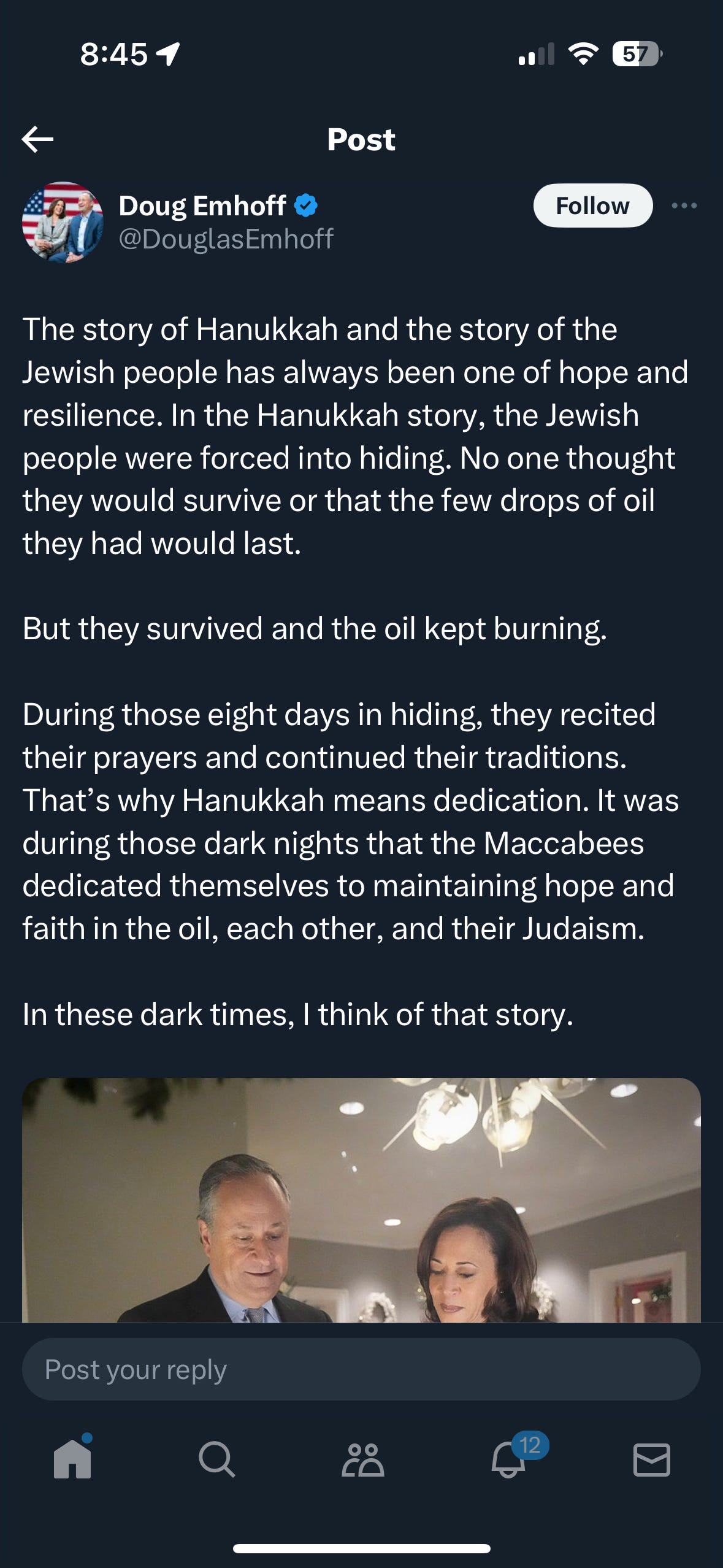 Goodness. It’s not that it was malicious or anything. It’s that the White House comms team didn’t catch it — like they didn’t have anyone who realized that this wasn’t the story of Hanukkah. The White House and VP comms shop should avoid putting the Second Gentleman in that sort of embarrassing position and did not.