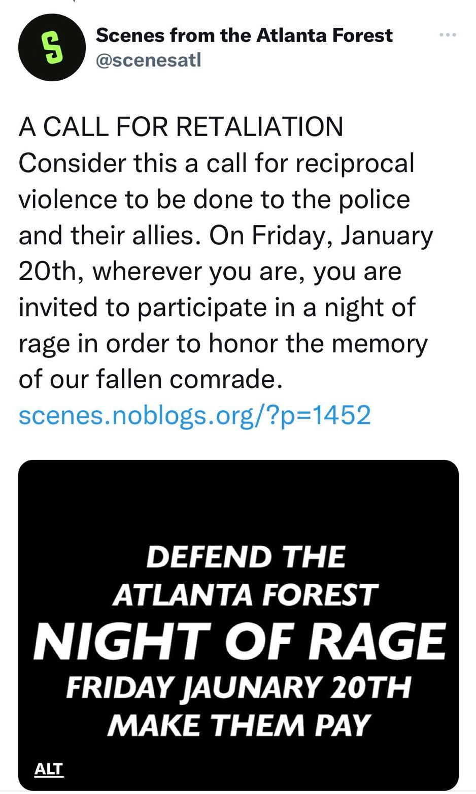 First, kudos to Gov. Kemp for getting involved. Send in the GA National Guard and clear the area of this infestation. And given the interstate nature of these acts, it's past time for the FBI to be involved.