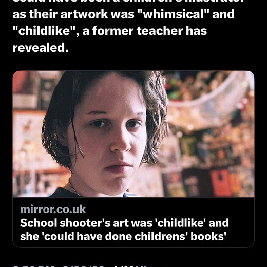 OUTRAGE: The Mirror published a disturbing puff piece claiming the Nashville shooter could’ve been a “children’s illustrator” because “their artwork was whimsical and childlike.”
