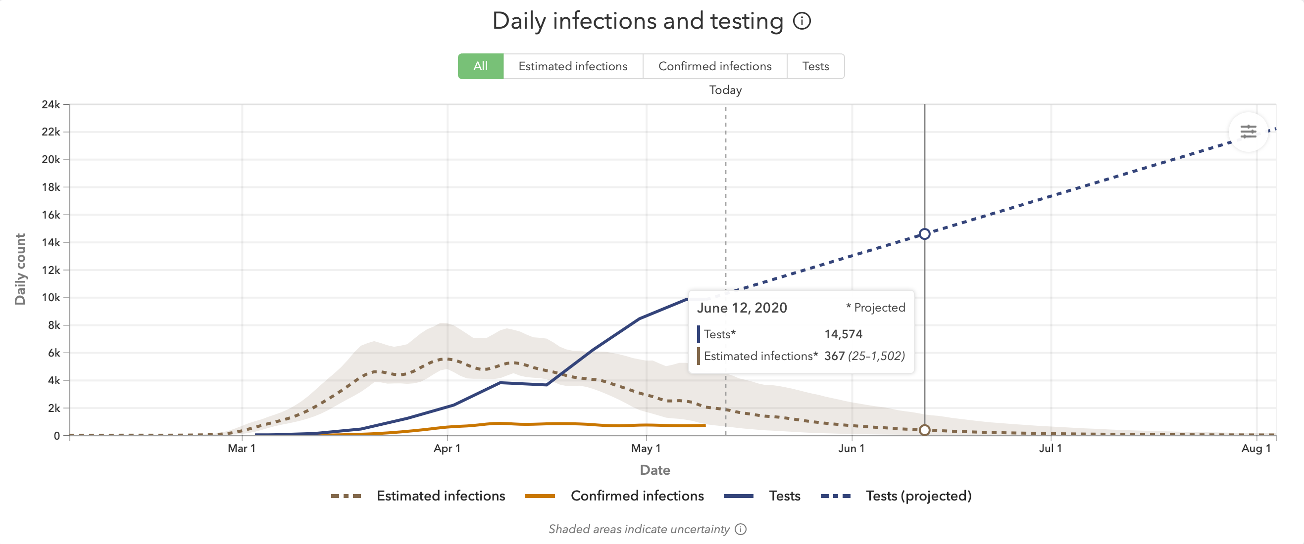 The IHME model is the most widely cited and relied upon model for COVID-19. The White House and Georgia’s Governor rely on it. On May 12, the IHME model predicted Georgia would still have hundreds of daily new cases into August and would have 1,783 daily new cases on June 12, 2020.